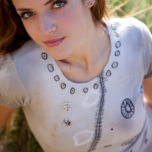 Organic Cotton T-shirt with Hand-Painted Circles and Lines