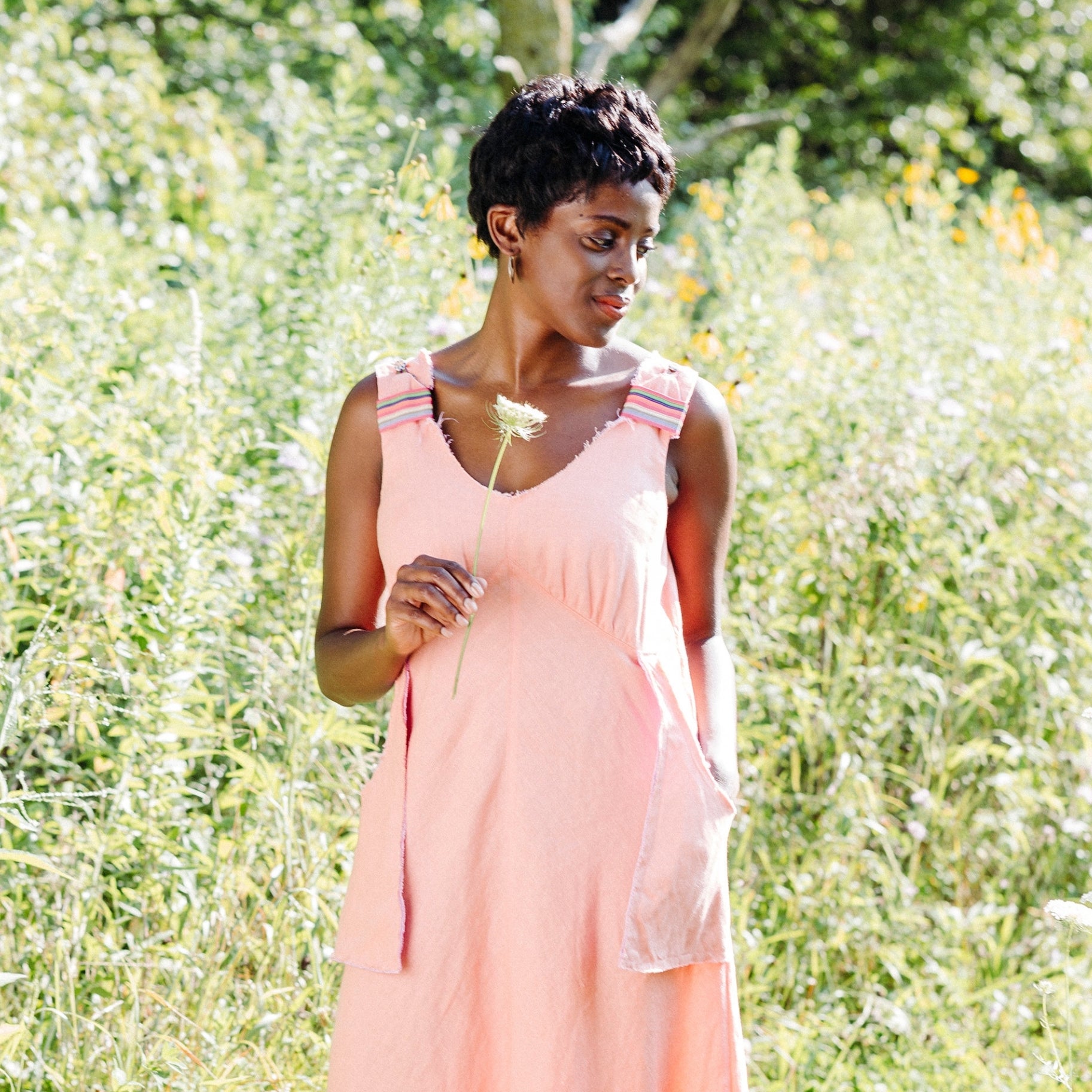 Raw edges on neckline, hem, and pockets for that perfectly cool + pretty + edgy look.