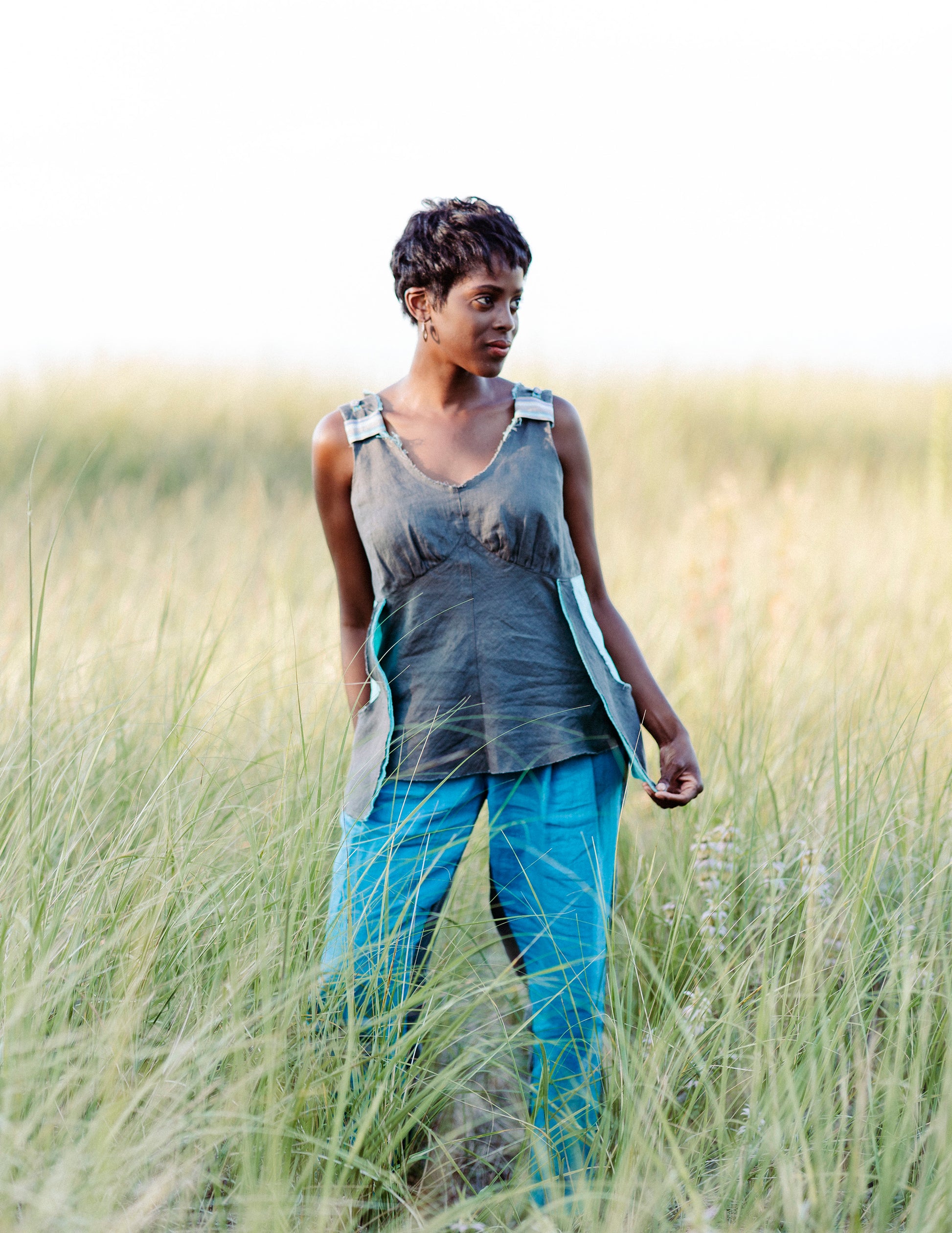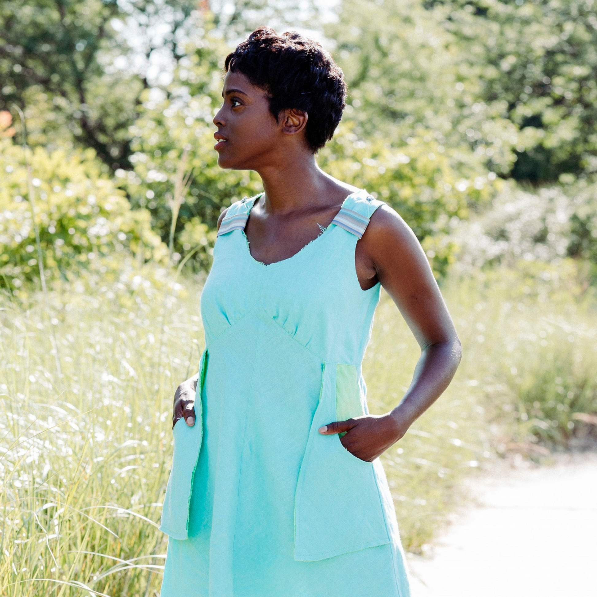 Raw edges on neckline, hem, and pockets for that perfectly cool + pretty + edgy look.